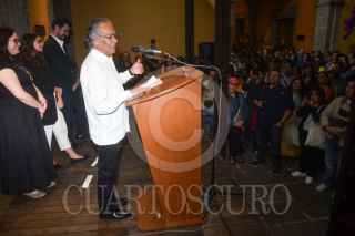 CIUDAD DE MÉXICO, 10ABRIL2025.- Pedro Valtierra, fotoperiodista y director de la Agencia Cuartoscuro, durante la inauguración de su exposición "Volver a la tierra del Quetzal" que estará en exhibición hasta el próximo 13 de julio en el Centro de la Imagen. La muestra de más de noventa fotografías que integran tres reportajes del conflicto armado interno que se vivió en Guatemala a inicios de 1980. FOTO: MARIO JASSO/CUARTOSCURO.COM