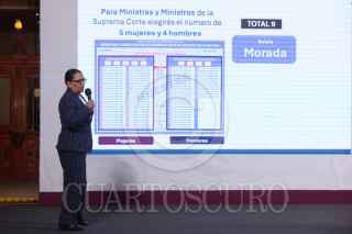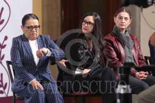 CIUDAD DE MÉXICO, 11ABRIL2025. Claudia Sheinbaum, presidenta de México, encabezó la conferencia “Mañanera del Pueblo” desde Palacio Nacional en la que participó la Secretaria de Cultura, Claudia Stella Curiel de Icaza.FOTO: EDGAR NEGRETE LIRA/CUARTOSCURO.COM