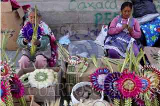 OAXACA DE JUÁREZ, OAXACA, 11ABRIL2025.- Como cada año, artesanos mixtecos que trabajan la palma arriban a la capital de Oaxaca para ofrecer artesanías elaboradas con esta planta, principalmente adornos con figuras religiosas que son utilizadas en la celebración del Domingo de Ramos. Para conmemorar el pasaje bíblico de la entrada de Jesús a Jerusalén, la iglesia católica celebra el Domingo de Ramos con lo que da inicio la Semana Santa, en torno a esta conmemoración las artesanías de palma son consumidas por los oaxaqueños que acostumbran llevarlas a bendecir para posteriormente depositarlas en los hogares a manera de protección. FOTO: CAROLINA JIMÉNEZ/CUARTOSCURO.COM