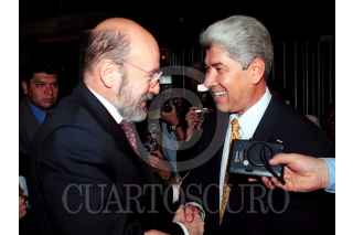 Luis Felipe Bravo Mena presidente Nacional del PAN, acudio al TRIFE, para felicitar a Francisco Ramirez Acuña gobernador electo de Jalisco, despues de conocer la resolucion de los magistrados. FOTO: Oswaldo Ramirez/CUARTOSCURO.COM