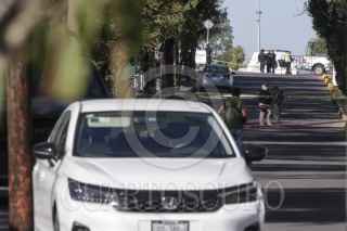 PUEBLA, PUEBLA, 12ABRIL2025.- Localizan cuatro cadáveres dentro de una camioneta en la zona de Los Fuertes, cerca de donde se instalan los juegos de la Feria de Puebla 2025. Los cuerpos fueron abandonados junto con una cartulina con la leyenda "Bienvenidos a la Feria de Puebla". FOTO: MIREYA NOVO/CUARTOSCURO.COM