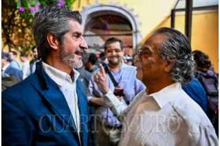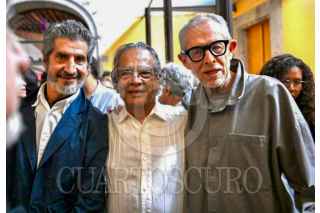 CIUDAD DE MÉXICO. 13ABRIL2025.- Inauguración de la exposición “Pedro Valtierra. Volver a la tierra del Quetzal”, en el Centro de la Imagen, ubicado en Plaza de la Ciudadela, Centro Histórico. Los maestros Pablo Ortíz Monasterio y Pedro Valtierra. FOTO: CUARTOSCURO COM