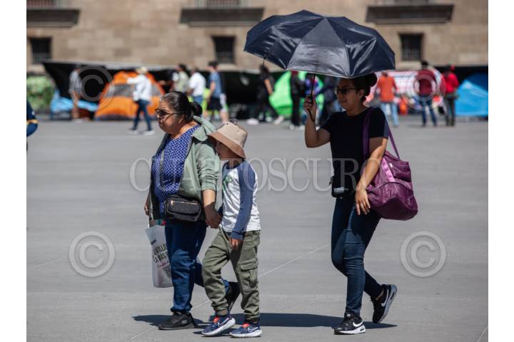 CIUDAD DE MÉXICO, 14ABRIL2025.- Continúan altas temperaturas en la Ciudad. En la imagen capitalinos visitan el Zócalo en el Centro de la Ciudad. FOTO: ANDREA MURCIA /CUARTOSCURO.COM