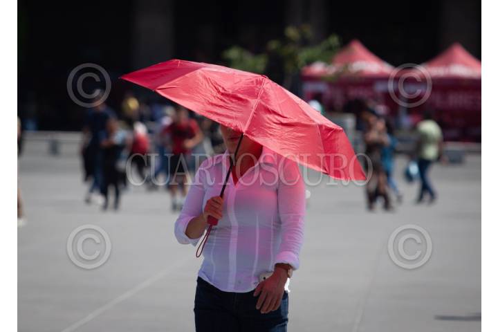 CIUDAD DE MÉXICO, 14ABRIL2025.- Continúan altas temperaturas en la Ciudad. En la imagen capitalinos visitan el Zócalo en el Centro de la Ciudad. FOTO: ANDREA MURCIA /CUARTOSCURO.COM