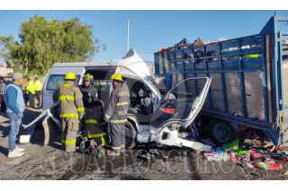 TECAMAC, ESTADO DE MÉXICO, 14ABRIL2025.- Al menos 5 muertos y 16 lesionados fue el saldo de un choque entre una unidad del transporte público de pasajeros, un camión recolector de basura y un automóvil particular en la carretera libre a Tizayuca, en la comunidad de Los Reyes Acozac en Tecámac. Los hechos ocurrieron la mañana de este lunes en el entronque de la carretera libre a Tizayuca, en la esquina de Paseo Bicentenario. En el lugar una combi de pasajeros de la Ruta Servicio Expreso con placa A-77011-D y con número económico CB013, que se dirigía hacia le centro de Tecámac, se impactó de frente con la camioneta de basura con placas KY-84-013 y posteriormente el automóvil chocó por detrás. FOTO: CUARTOSCURO.COM