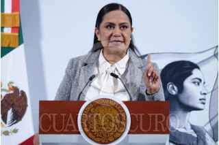 CIUDAD DE MÉXICO, 15ABRIL2025.- Ariadna Montiel, secretaria de Bienestar, durante su participación en la mañanera de pueblo realizada en Palacio Nacional. FOTO: GRACIELA LÓPEZ/CUARTOSCURO.COM