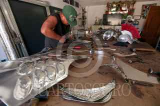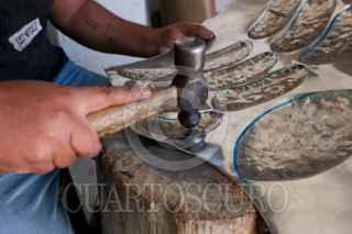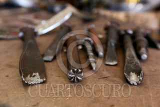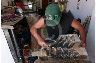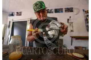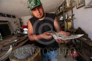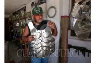 TOLUCA, ESTADO DE MÉXICO, 15ABRIL2025.- Artesanos dedicados a la Metalisteria en la delegación de Cacalomacán, en Toluca, trabajan los cascos y pecheras que serán utilizados para la representación del Viacrucis de Jesús por los soldados romanos; distribuyen su trabajo en lugares como Iztapalapa, Guanajuato y algunos otros municipios mexiquenses. Johnatan Romero continúa con la tradición del taller familiar Romero que tiene más de 50 años dedicándose a este trabajo siendo ya cuatro generaciones, la producción de la indumentaria comienza con mes y medio de anticipación, llegan a elaborar entre 300 y 500 piezas para la Semana Santa. FOTO: CRISANTA ESPINOSA AGUILAR /CUARTOSCURO.COM