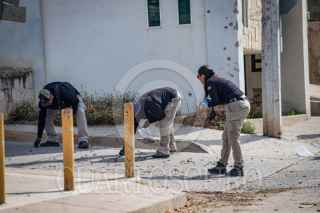 CULIACÁN, SINALOA, 15ABRIL2025.- Un ataque armado contra agentes de la Policía Municipal en la delegación de la Secretaría de Seguridad Pública y Tránsito Municipal de la colonia Los Huizaches dejó como saldo preliminar un oficial fallecido y otro herido, movilizando a corporaciones policíacas y a la Secretaría de la Defensa Nacional. Los hechos ocurrieron alrededor de las 6:40 de la mañana de este martes 15 de abril, en la caseta de policía ubicada en la calle Mina Plomosa, entre Liberalismo y Miguel de la Madrid Hurtado, cerca de las canchas deportivas del sector. El agente caído, identificado como José Adolfo, fue encontrado sin vida dentro de un Honda Civic gris, modelo antiguo y sin placas, estacionado a unos 10 metros de la base policial. El oficial herido, identificado como Cristian, permanece bajo atención médica, mientras que en el lugar del ataque se recolectaron más de mil casquillos, evidenciando la magnitud del atentado. FOTO: JOSÉ BETANZOZ ZÁRATE/CUARTOSCURO.COM