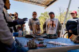 CIUDAD DE MÉXICO, 15ABRIL2025.- Esteban Gallardo Gutiérrez y María del Carmen Volante, padre y madre de Pamela Gallardo Volante (joven desaparecida en 2017 en la alcaldía Tlalpan) dan agradecimientos y cierran el segundo día de la jornada de búsqueda en la zona donde se dio con la localización de 18 restos óseos humanos, en febrero pasado, y que se encuentra en las inmediaciones del kilometro 13 de la carretera Picacho-Ajusco (lugar donde se tiene indicios que estuvo la joven antes de desaparecer). FOTO: GALO CAÑAS/CUARTOSCURO.COM