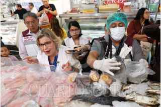 CIUDAD DE MÉXICO, 16ABRIL2025.- En en el marco de Cuaresma, Nadine Gasman, secretaria de Salud, encabezó un operativo de Vigilancia Sanitaria en el Mercado Hidalgo. FOTO: GRACIELA LÓPEZ/CUARTOSCURO.COM