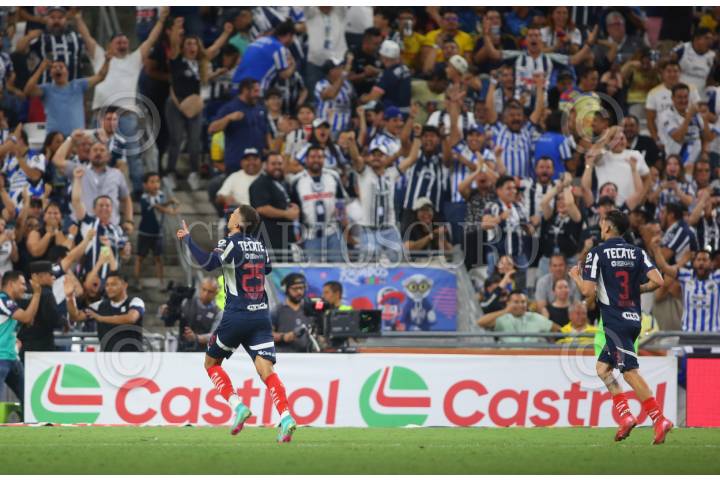 GUADALUPE, NUEVO LEÓN, 16ABRIL2025.- Nelson de Dossa de los Rayados del Monterrey, festeja el gol ante el América, en el estadio BBVA, partido correspondiente a la jornada 16 de la Clausura 2025 de la Liga Mx. Marcador Final: Monterrey: 1 - América: 0. FOTO: GABRIELA PÉREZ MONTIEL / CUARTOSCURO.COM