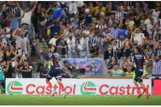GUADALUPE, NUEVO LEÓN, 16ABRIL2025.- Nelson de Dossa de los Rayados del Monterrey, festeja el gol ante el América, en el estadio BBVA, partido correspondiente a la jornada 16 de la Clausura 2025 de la Liga Mx. Marcador Final: Monterrey: 1 - América: 0. FOTO: GABRIELA PÉREZ MONTIEL / CUARTOSCURO.COM