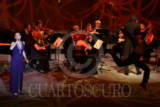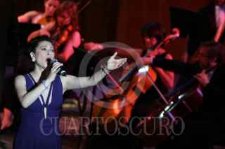 VILLAHERMOSA, TABASCO, 23OCTUBRE2007.- La soprano mexicana Lourdes Ambriz, se presentó la anoche de ayer en el teatro estatal Esperanza Iris su concierto "Experiencia Loca" en el cual interpreta a Victoria Barbosa con arreglos orquestales de Dmitri Dubin, bajo la direccion de concertador de Eduardo García Barrios y dirección general de Silvia Lozano. FOTO: MARCO POLO GUZMÁN/CUARTOSCURO.COM