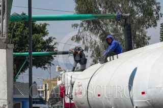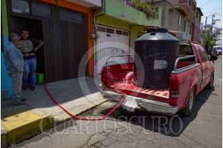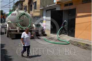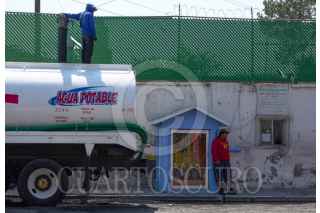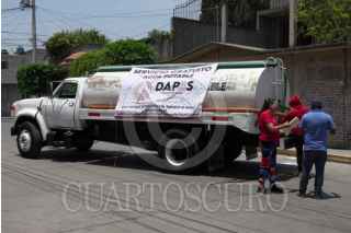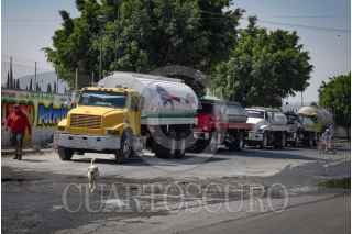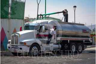 CHIMALHUACÁN, ESTADO DE MÉXICO 17ABRIL2025.- Pipas improvisadas, con un tinaco sobre una camioneta con agua comprada a otros vecinos y conductores siendo perseguidos por habitantes para pedir el abastecimiento del vital líquido, es el día a día de al menos 10 colonias del Municipio de Chimalhuacán. Pese a que las pipas trabajan desde tempranas horas, muchas de ellas no abastecen la zona por el contrario llevan el agua a demarcaciones que colindan con el Estado de México, según comentan los también conocidos como piperos, dejando sin agua, para las necesidades más básicas a colonias como; San Agustín Atlapulco, Villas San Agustín y Jardines de San Agustín. Autoridades informaron que este desabasto se debe a la descompostura de una bomba de agua en el Pozo San Lorenzo II. FOTO: ROGELIO MORALES CUARTOSCURO.COM