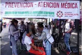CIUDAD DE MÉXICO, 17ABRIL2025.- En el marco de la celebración de la Semana Santa en la alcaldía Iztapalapa, se colocaron seis módulos de Hidratación y Servicio Médico, en donde los asistentes pueden acudir a la toma de presión y azúcar, así mismo dependiendo del estado de salud, personal médico brinda medicamentos de forma gratuita y si es necesario recetas médicas. El servicio estará abierto al público Jueves y Viernes Santo en un horario de 12 a 18 horas en diferentes puntos alrededor de la explanada de esta demarcación. FOTO: GRACIELA LÓPEZ/CUARTOSCURO.COM