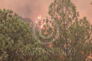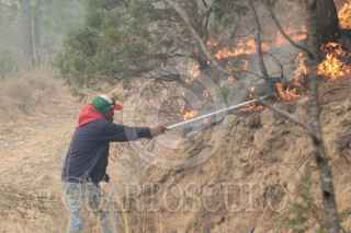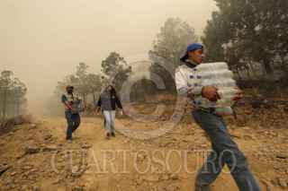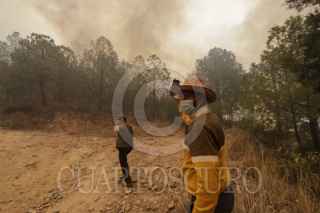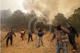 ATLTZAYANCA, TLAXCALA, 17ABRIL2025.- Ejidatarios y voluntarios continúan la lucha contra el fuego que desde hace 3 días consume la zona boscosa de ejidos del nororiente del estado de Tlaxcala. Las imágenes en el cerro "El Vergel", del ejido Buena Vista, perteneciente al municipio de Altzayanca, a dónde han acudido también miembros de las Fuerzas Rurales y Protección Civil.Cabe resaltar la suma de la población civil que con sus propios medios han hecho llegar ayuda ante esta catástrofe ambiental. FOTO: ALAÍN HERNÁNDEZ/CUARTOSCURO.COM