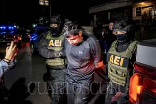 TIJUANA BAJA CALIFORNIA 17ABRIL2025.- Un operativo conjunto entre un grupo especial de la Fiscalía General del Estado (FGE) y elementos de la Secretaría de la Defensa Nacional (SEDENA) logró la aprehensión de César Moisés Hernández, ciudadano estadounidense acusado del asesinato de la Jefa de Enlace Internacional de la Policía Estatal de Baja California. El fugitivo, que había desafiado la justicia de ambos países, fue localizado oculto en un cuarto improvisado de madera dentro de una vivienda abandonada, situada en la colonia Lomas del Matamoros, en la zona este de la ciudad. En la operación participaron 40 elementos de la Agencia Estatal de Investigación (AEI) de la FGE, encabezados por el Comisionado Hibael Suárez Osorio. La SEDENA brindó apoyo estratégico mediante el establecimiento de un cerco de seguridad en los alrededores. La Fiscal General del Estado, María Elena Andrade Ramírez, supervisó personalmente el desarrollo del operativo, el cual concluyó con la exitosa detención del responsable. El detenido en estos momentos fue ingresado a las instalaciones de la Fiscalía General del Estado, donde tendrá que responder por los delitos que ha cometido en la ciudad. FOTO: OMAR MARTÍNEZ / CUARTOSCURO.COM