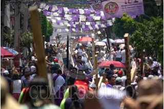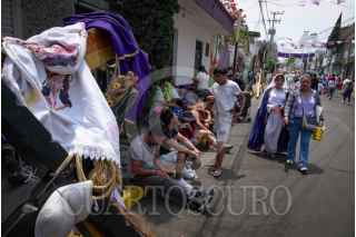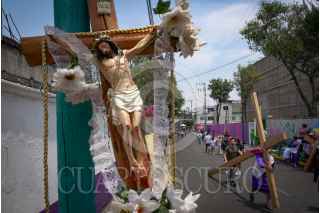 CIUDAD DE MÉXICO 18ABRIL2025.- Nazarenos recorren las calles de la alcaldía Iztapalapa durante el viernes santo y la 182 representación de la Pasión de Cristo, esto como parte de las celebraciones de Semana Santa. FOTO: ROGELIO MORALES CUARTOSCURO.COM