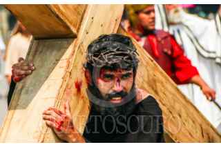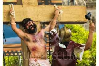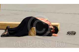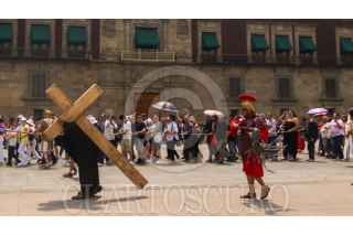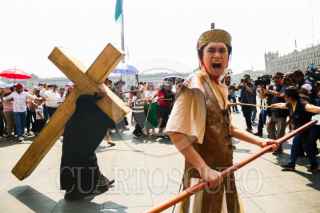 CIUDAD DE MÉXICO. 18ABRIL2025.- representación de la pasión de Cristo en el Zócalo de la Ciudad de México. Paseantes y turistas fueron testigos del viacrucis que año con año se representa en el centro de la Capital. FOTO: VICTORIA VALTIERRA/CUARTOSCURO.COM