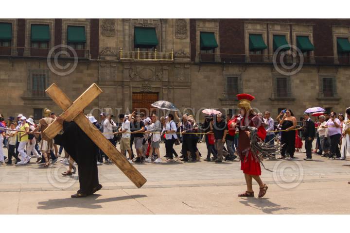 CIUDAD DE MÉXICO. 18ABRIL2025.- representación de la pasión de Cristo en el Zócalo de la Ciudad de México. Paseantes y turistas fueron testigos del viacrucis que año con año se representa en el centro de la Capital. FOTO: VICTORIA VALTIERRA/CUARTOSCURO.COM