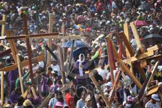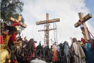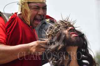 CIUDAD DE MÉXICO, 18ABRIL2025.- Representación 182 de la edición del Cristo en Iztapalapa, un recorrido que parte en los barrios aledaños al cerro de la estrella. FOTO: MARIO JASSO /CUARTOCURO.COM