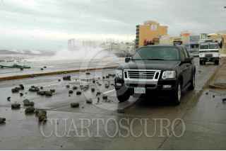 VERACRUZ, VERACRUZ, 23OCTUBRE2007.- Desde la madrugada de este día, las costas veracruzanas sufren los embates de fuertes vientos provocados por la presencia del frente frío número tres, mismos que alcanzaron rachas de más de cien kilómetros por hora. En la zona conurbada Veracruz-Boca del Río este fenómeno provocó la caída de árboles, espectaculares y lluvia. Varias avenidas importantes se vieron afectadas por estas causas y en áreas turísticas la mayoría de los negocios sufrieron afectaciones. El puerto fue cerrado a toda navegación. FOTO: JOSÉ CANDELARIO/CUARTOSCURO.COM