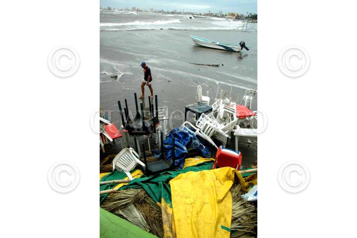 VERACRUZ, VERACRUZ, 23OCTUBRE2007.- Desde la madrugada de este día, las costas veracruzanas sufren los embates de fuertes vientos provocados por la presencia del frente frío número tres, mismos que alcanzaron rachas de más de cien kilómetros por hora. En la zona conurbada Veracruz-Boca del Río este fenómeno provocó la caída de árboles, espectaculares y lluvia. Varias avenidas importantes se vieron afectadas por estas causas y en áreas turísticas la mayoría de los negocios sufrieron afectaciones. El puerto fue cerrado a toda navegación. FOTO: JOSÉ CANDELARIO/CUARTOSCURO.COM