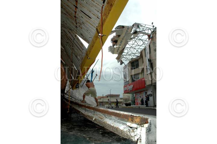 VERACRUZ, VERACRUZ, 23OCTUBRE2007.- Desde la madrugada de este día, las costas veracruzanas sufren los embates de fuertes vientos provocados por la presencia del frente frío número tres, mismos que alcanzaron rachas de más de cien kilómetros por hora. En la zona conurbada Veracruz-Boca del Río este fenómeno provocó la caída de árboles, espectaculares y lluvia. Varias avenidas importantes se vieron afectadas por estas causas y en áreas turísticas la mayoría de los negocios sufrieron afectaciones. El puerto fue cerrado a toda navegación. FOTO: JOSÉ CANDELARIO/CUARTOSCURO.COM