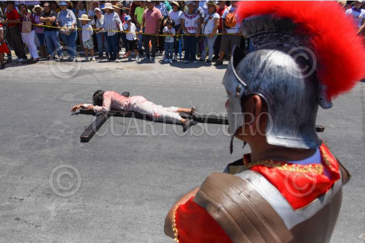 CAMPECHE, CAMPECHE, 18ABRIL2025.- Feligreses del barrio de Santa Ana reviven con fervor la pasión de Cristo en el tradicional viacrucis viviente, que cumple 63 años de historia en Campeche. FOTO: MICHAEL BALAM/CUARTOSCURO.COM