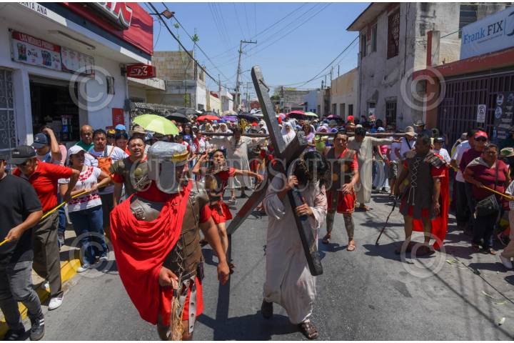 CAMPECHE, CAMPECHE, 18ABRIL2025.- Feligreses del barrio de Santa Ana reviven con fervor la pasión de Cristo en el tradicional viacrucis viviente, que cumple 63 años de historia en Campeche. FOTO: MICHAEL BALAM/CUARTOSCURO.COM