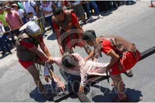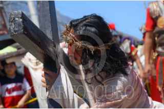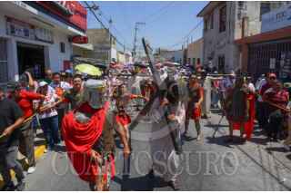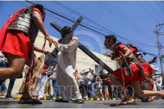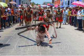 CAMPECHE, CAMPECHE, 18ABRIL2025.- Feligreses del barrio de Santa Ana reviven con fervor la pasión de Cristo en el tradicional viacrucis viviente, que cumple 63 años de historia en Campeche. FOTO: MICHAEL BALAM/CUARTOSCURO.COM