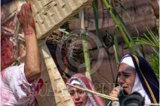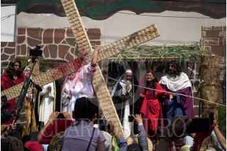 CIUDAD DE MÉXICO 18ABRIL2025.- Miles de personas provenientes de todo el país y diversas partes del mundo, asistieron a la 182 representación del Viacrucis en calles de la alcaldía Iztapalapa FOTO: ROGELIO MORALES CUARTOSCURO.COM