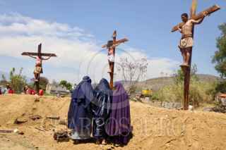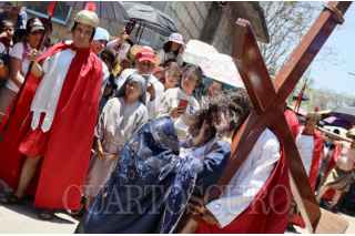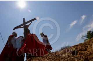 ANIMAS TRUJANO, OAXACA, 18ABRIL2025.- Pobladores de la comunidad de Animas Trujano celebraron la XV Representación de la Pasión de Cristo. El viacrusis que rememora el camino de Jesucristo al monte Calvario recorrió algunas calles de la población hasta el paraje La Ciénaga en donde se representó la crucifixión. Decenas de personas, entre niños, jóvenes y adultos de la comunidad se preparan arduamente año con año para interpretar a los personajes bíblicos durante la Semana Santa. FOTO: CAROLINA JIMÉNEZ MARISCAL/CUARTOSCURO.COM