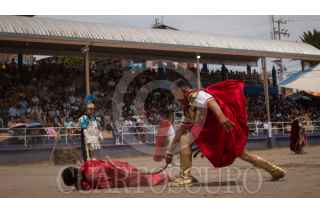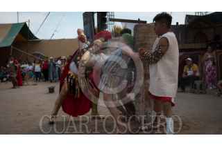 SANTA CRUZ AQUIAHUAC, TLAXCALA, 18ABRIL2025.- La comunidad de Santa Cruz Aquiahuac se convirtió este Viernes Santo en el escenario de una emotiva representación de pasajes bíblicos, conocida como el "Circo Romano". Con un realismo impactante, los pobladores recrearon escenas de la Pasión de Cristo, transportando a los espectadores a la Jerusalén de hace más de 2.000 años. FOTO: ALAIN HERNÁNDEZ/CUARTOSCURO.COM