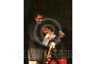 MÉXICO, D.F., 23OCTUBRE2007.- El grupo de rock "El Tri" ofreció un concierto en el auditorio Manuel Gómez Morín, en la sede nacional del PAN. El diputado Gerardo Priego le entregó un reconocimiento por su participación a Alex Lora. FOTO: MOISÉS PABLO/CUARTOSCURO.COM
