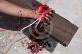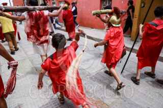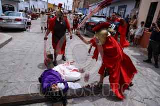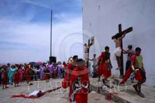 VETA GRANDE, ZACATECAS, 18ABRIL2025.-Representación del viacrucis en el municipio minero. Cientos de personas participan en la ceremonia tradicional que comienza desde la presidencia municipal y termina en el Templo del Calvario. FOTO: ADOLFO VLADIMIR /CUARTOSCURO.COM