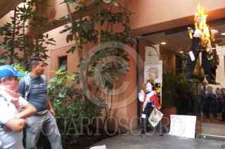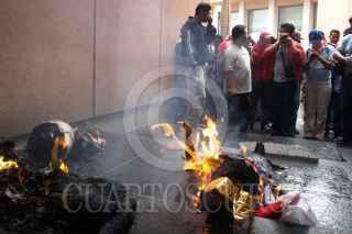 CHILPANCINGO, GUERRERO 24OCTUBRE2007.- Egresados de la normal rural de Ayotzinapa durante la protesta que realizaron en el interior del Congreso local donde quemaron monigotes representativos del gobernador del estado Zeferino Torreblanca Galindo, de la presidenta del SNTE Elba Esther Gordillo y del secretario de eduacion en la entidad Jose Luis Gonzalez de la Vega Otero para exigir la entrega de plazas para maestros rurales. FOTO: OSCAR ALVARADO/CUARTOSCURO.COM