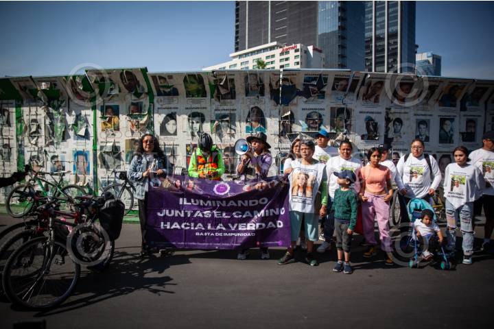 CIUDAD DE MÉXICO, 20ABRIL2025.- Colectiva Luciérnagas de personas en búsqueda de sus familiares víctimas de desaparición forzada acompañados de artistas y ciclistas realizan por segundo año la rodada por las familias que buscan. El punto de salida fue la glorieta de personas desaparecidas y el segundo la Fiscalía donde realizaron pega de carteles de búsqueda, la jornada terminará en Tacuba con una tarde de arte. FOTO: ANDREA MURCIA /CUARTOSCURO.COM