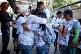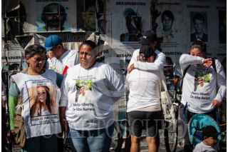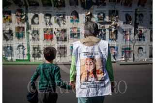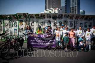 CIUDAD DE MÉXICO, 20ABRIL2025.- María del Carmen Volante, madre de Pamela Gallardo Volante, observa los diversos rostros de personas desaparecidas en la llamada Glorieta de las y los Desaparecidos, en este punto partió la segunda rodada encabezada por las familias que buscan a sus seres queridos. FOTO: ANDREA MURCIA /CUARTOSCURO.COM