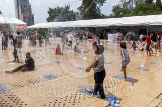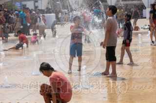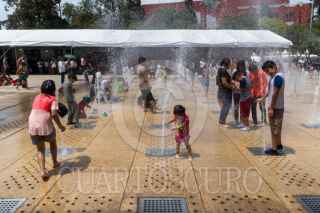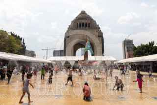 CIUDAD DE MÉXICO, 20ABRIL2025.- Decenas de niños y niñas continúan disfrutando de las vacaciones de semana santa en la fuente del Monumento a la Revolución, en donde los pequeños se divirtieron mojándose en un domingo caluroso. FOTO: MOISÉS PABLO/CUARTOSCURO.COM