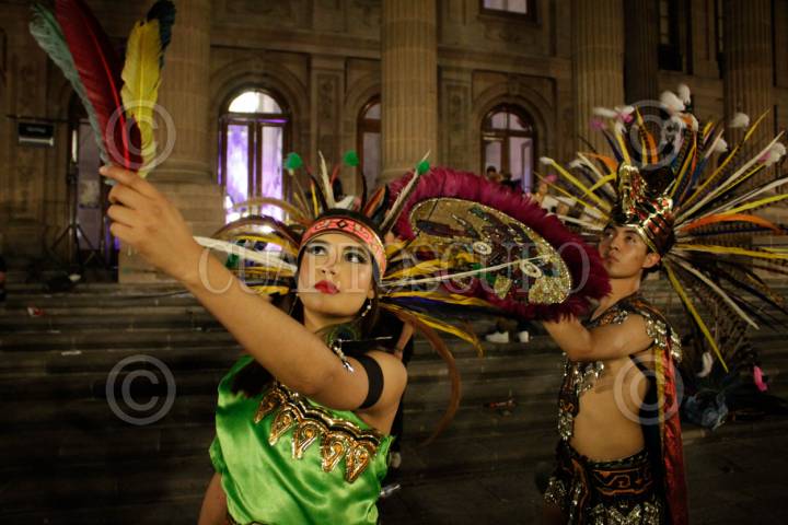 SAN LUIS POTOSÍ, SAN LUIS POTOS, 20ABRIL2025.- En la explanada del Museo de la Máscara se realizó el XXIII Encuentro de Danzas Aztecas donde participaron diferentes grupos que se han dedicado a este arte dancístico durante años. FOTO: MARCELO PALACIOS/CUARTOSCURO.COM
