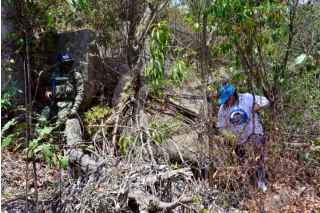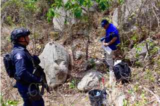 ACAPULCO, GUERRERO, 21ABRIL2025.- Integrantes de la colectiva Ivan Vicente Suastegui, realizaron una búsqueda en la zona del Parque Nacional El Veladero, en donde encontraron los huesos de restos humanos, los cuales fueron resguardados y levantados por peritos de la Fiscalía Regional del Estado de Guerrero, en el mismo lugar hace un año también fueron localizados otros restos humanos. FOTO: CARLOS ALBERTO CARBAJAL/CUARTOSCURO.COM