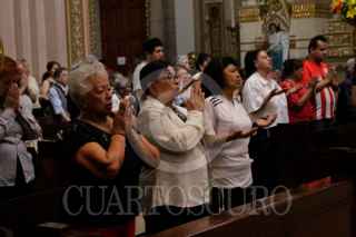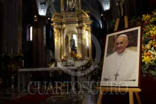 SAN LUIS POTOSÍ, SAN LUIS POTOS, 210ABRIL2025.- En la catedral Metropolitana de San Luis Potosí las ceremonias religiosas que se realizaron hoy fueron dedicadas al Papa Francisco para pedir por su eterno descanso donde colocó su imagen en el altar principal del argentino Papa Jorge Mario Bergoglio, quien nació en Buenos Aires el 17 de diciembre de 1936 y fue el mayor de cinco hermanos. Sus padres habían huido de su Italia natal escapando del fascismo. FOTO; MARCELO PALACIOS/CUARTOSCURO.COM