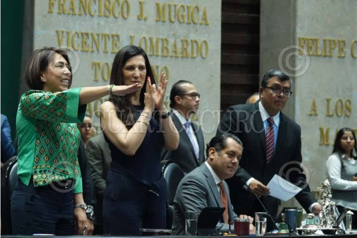 CIUDAD DE MÉXICO, 22ABRIL2025.- La diputada María Luisa Mendoza Mondragón (Partido Verde), tomo protesta como vicepresidenta de la mesa directiva en la Cámara de Diputados. La acompañan los diputados Kenya López Rabadán y Sergio Luna Gutiérrez, vicepresidenta y presidente de la mesa correspondientemente. FOTO: GRACIELA LÓPEZ/CUARTOSCURO.COM