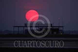 ZUMPANGO, ESTADO DE MÉXICO, 22ABRILO2025.- Puesta de sol desde las inmediaciones del Aeropuerto Internacional Felipe Ángeles (AIFA). FOTO: GALO CAÑAS/CUARTOSCURO.COM