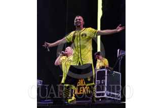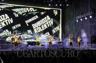 ZACATECAS, ZACATECAS, 22ABRIL2025.- La banda de Bosnia y Herzegovina, Dubioza Kolektive, se presentó en la Plaza de Armas como parte de las actividades del 39 Festival Cultural Zacatecas 2025. La banda, surgida en 2003 durante la posguerra en los Balcanes, puso a bailar al público zacatecano con una fusión explosiva de ska, punk, reggae, electrónica y hip-hop. FOTO: ADOLFO VLADIMIR /CUARTOSCURO.COM