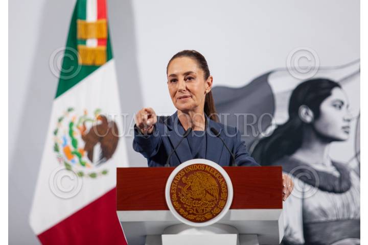 CIUDAD DE MÉXICO, 23ABRIL2025.- Claudia Sheinbaum Pardo, presidenta de México, durante la conferencia de prensa matutina en Palacio Nacional. FOTO: ANDREA MURCIA /CUARTOSCURO.COM
