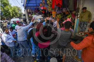 TOLUCA, ESTADO DE MÉXICO, 23ABRIL2025.- Desde temprana hora personal de la Dirección de Gobernación del ayuntamiento de Toluca y policías municipales realizaron un operativo en la zona de la Terminal de Toluca para retirar comercio ambulante instalado en las calles aledañas así como en banquetas, los comerciantes retiraron su mercancía, sólo les fue retenidas algunas estructuras metálicas. FOTO: CRISANTA ESPINOSA AGUILAR /CUARTOSCURO.COM
