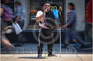 CIUDAD DE MÉXICO, 23ABRIL2025.- Un señor con discapacidad visual toca algunas melodías en la calle de Madero en el Centro Histórico. FOTO: GRACIELA LÓPEZ/CUARTOSCURO.COM