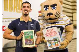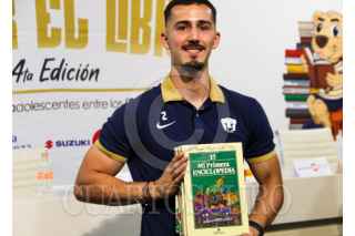 CIUDAD DE MÉXICO. 23ABRIL2025.- El Club Universidad Nacional los invita a la conferencia de prensa del cierre de la campaña “Pasar el libro 2025”, en la que estará presente Pablo Bennevendo, defensa del primer equipo varonil, además de patrocinadores el evento se llevó acabo en la Cantera de los Pumas de la UNAM. FOTO: VICTORIA VALTIERRA/CUARTOSCURO.COM